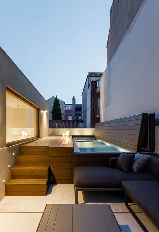 A l’exterior, hem treballat a la façana i al pati amb piscina, on hem construït un elegant sobreepiscina de fusta, que permet cobrir-la quan no s’utilitza i guanyar espai útil, mantenint l’estètica del conjunt.