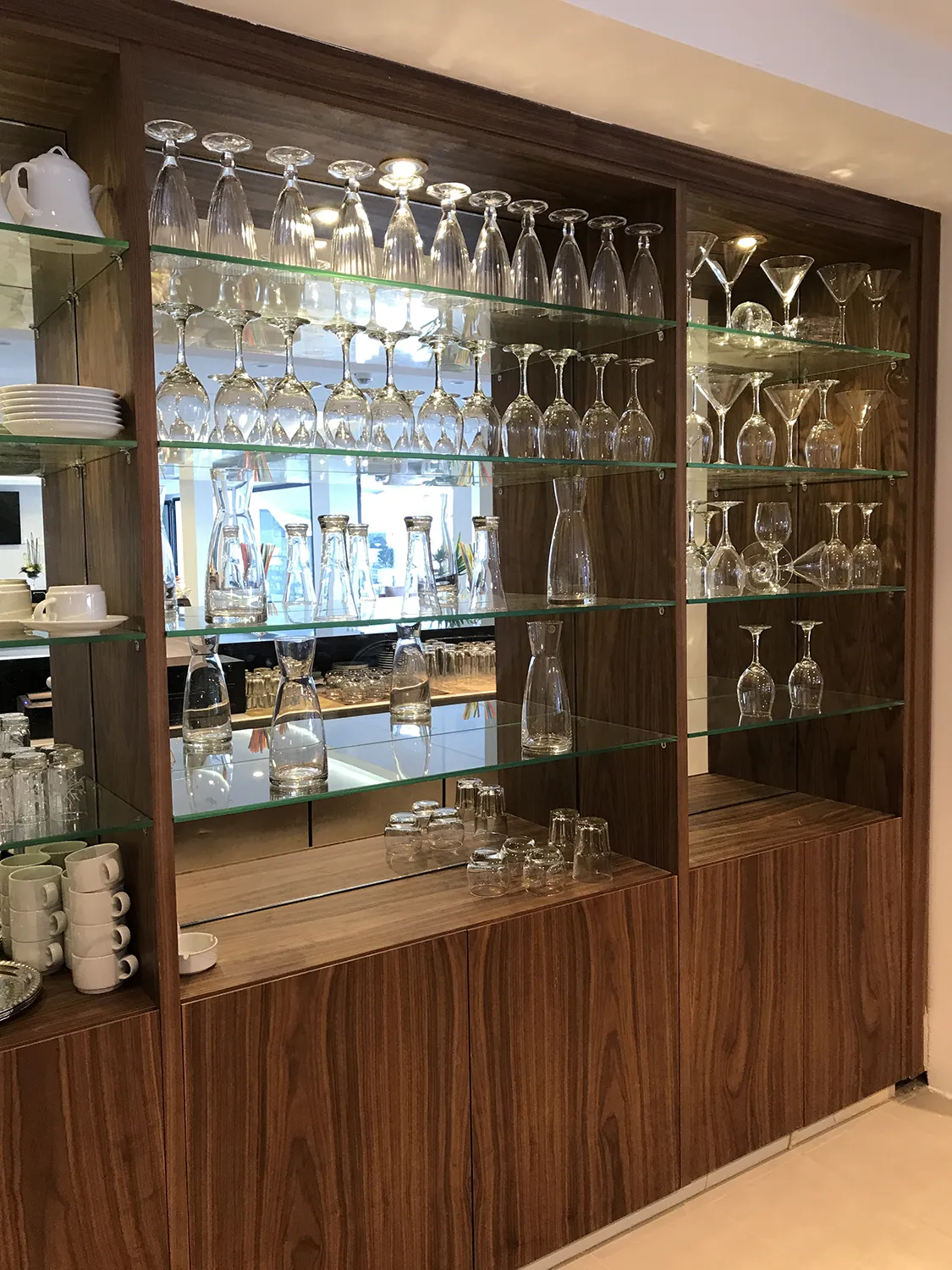 S’hi han desenvolupat llibreries, escriptoris, revestiments de paret a les habitacions, portes i el mobiliari de la zona de recepció, tot utilitzant fustes nobles i acabats d’alta qualitat.